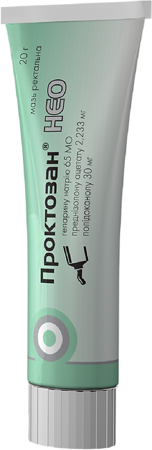 1. Згідно інструкції для медичного застосування лікарського засобу: ПРОКТОЗАН НЕО, мазь ректальна, РП № UA/4645/01/01 від 11.08.2021, ПРОКТОЗАН НЕО, супозиторії ректальні, №10, РП № UA/4645/02/01 від 11.08.2021, наказ МОЗ України №2268 від 15.12.2022.